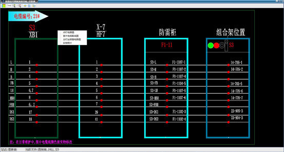該系統(tǒng)可設(shè)計、繪制出規(guī)范的電纜徑路圖,并對完成的電纜徑路圖進(jìn)行自動識別,如各條主電纜的徑路結(jié)構(gòu)、箱盒類型、連接設(shè)備的